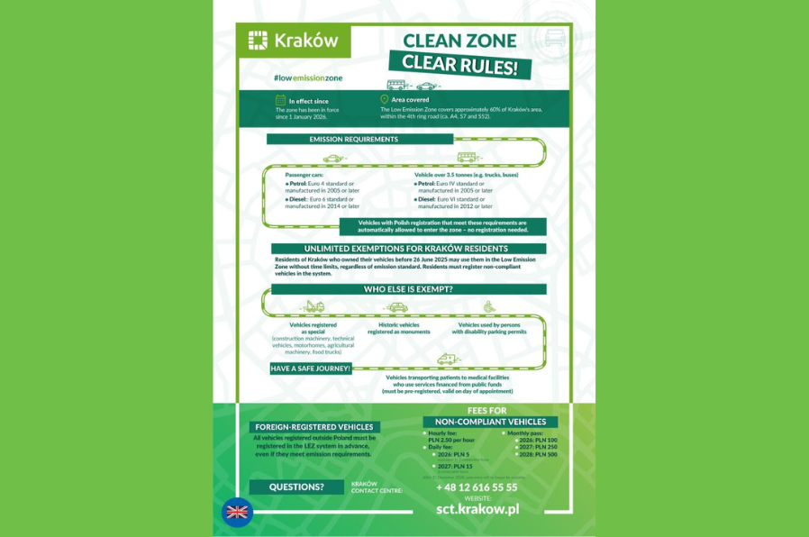 We provide informational materials about the Low Emission Zone in three language versions: Polish, English, and Ukrainian, to help all road users become familiar with the applicable rules.